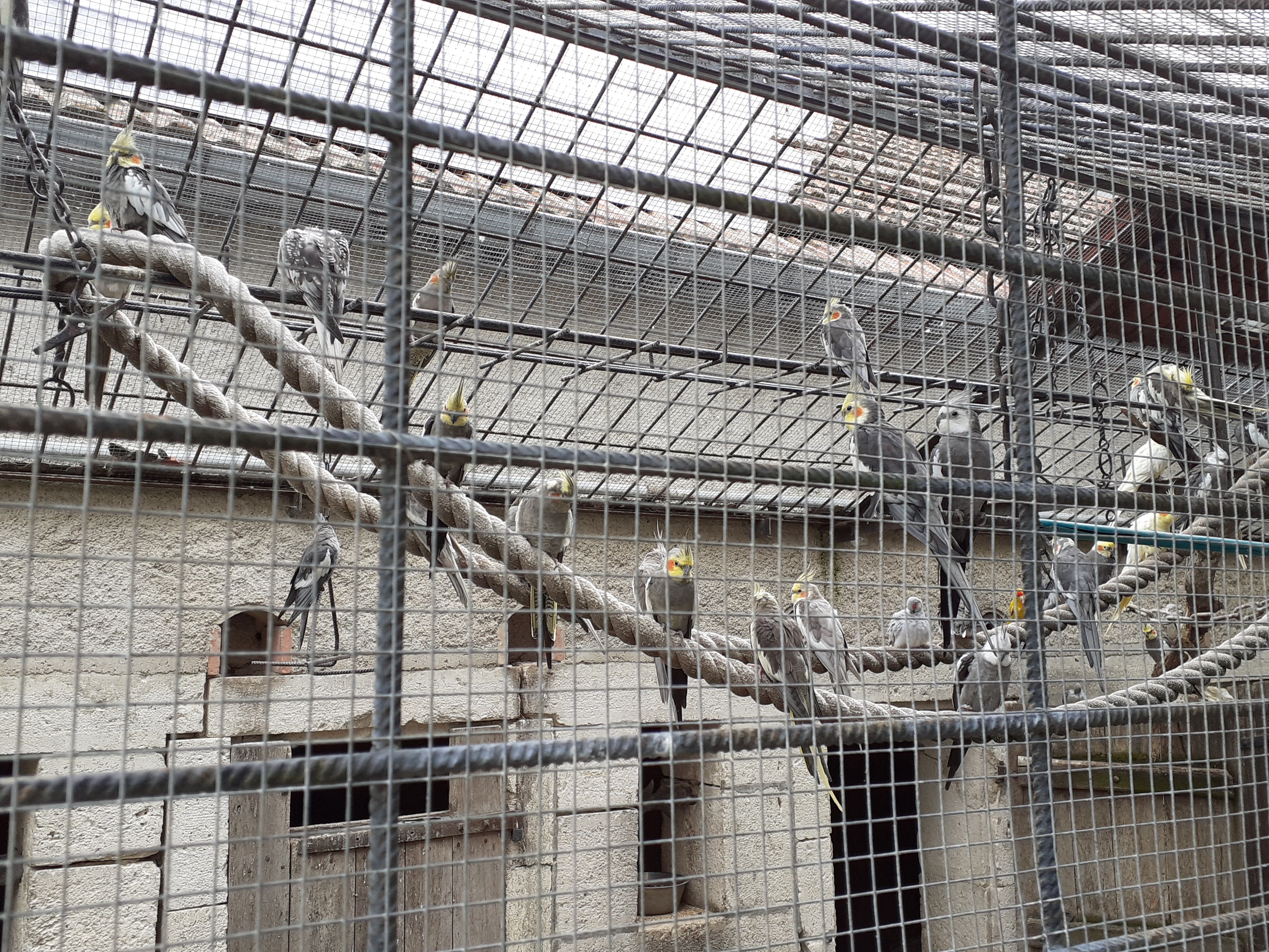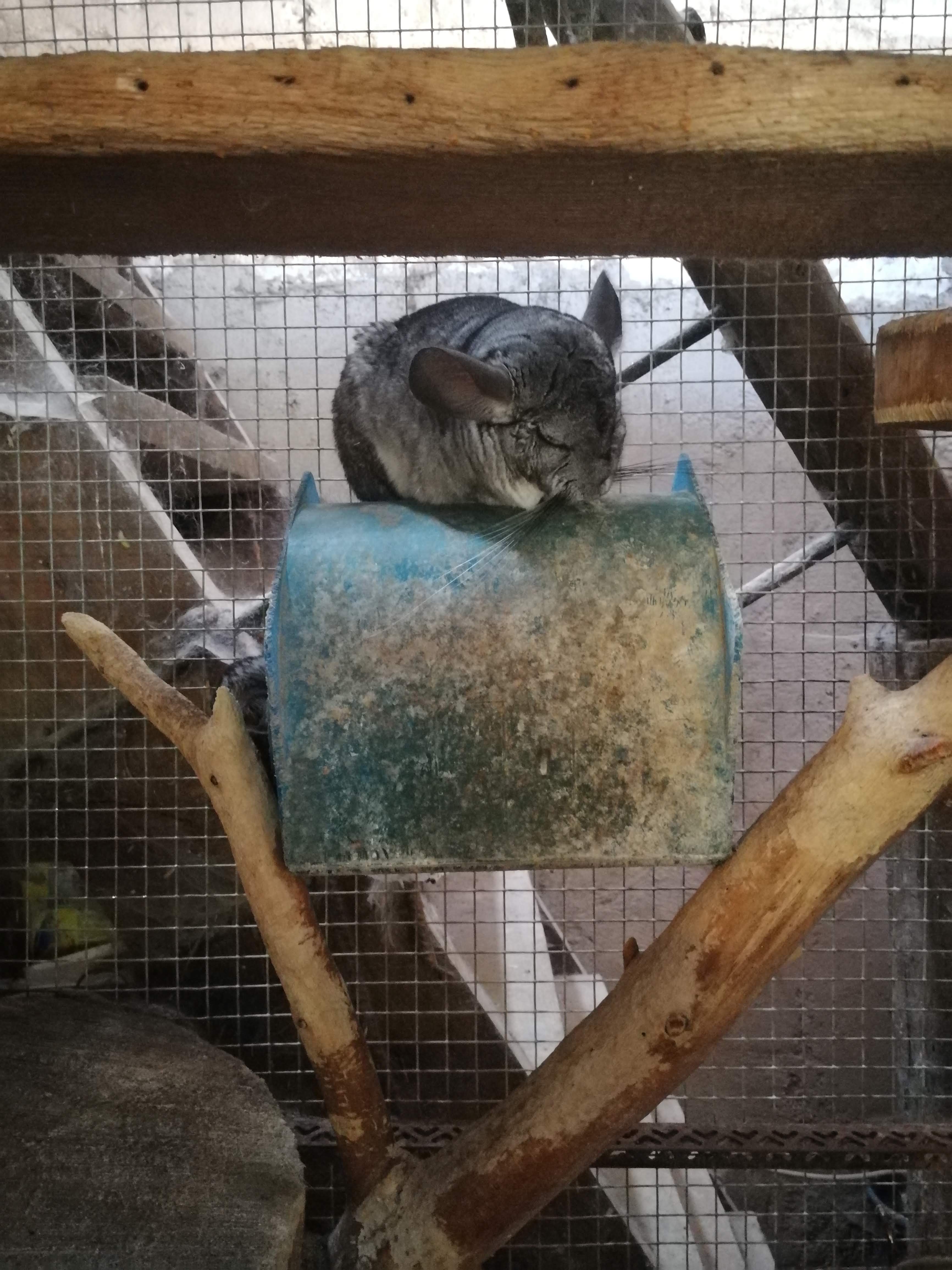 Volières trop petite avec les paons Ils devraient être dans un espace en liberté. Chinchilla devrait être séparé de la proximité des oiseaux.