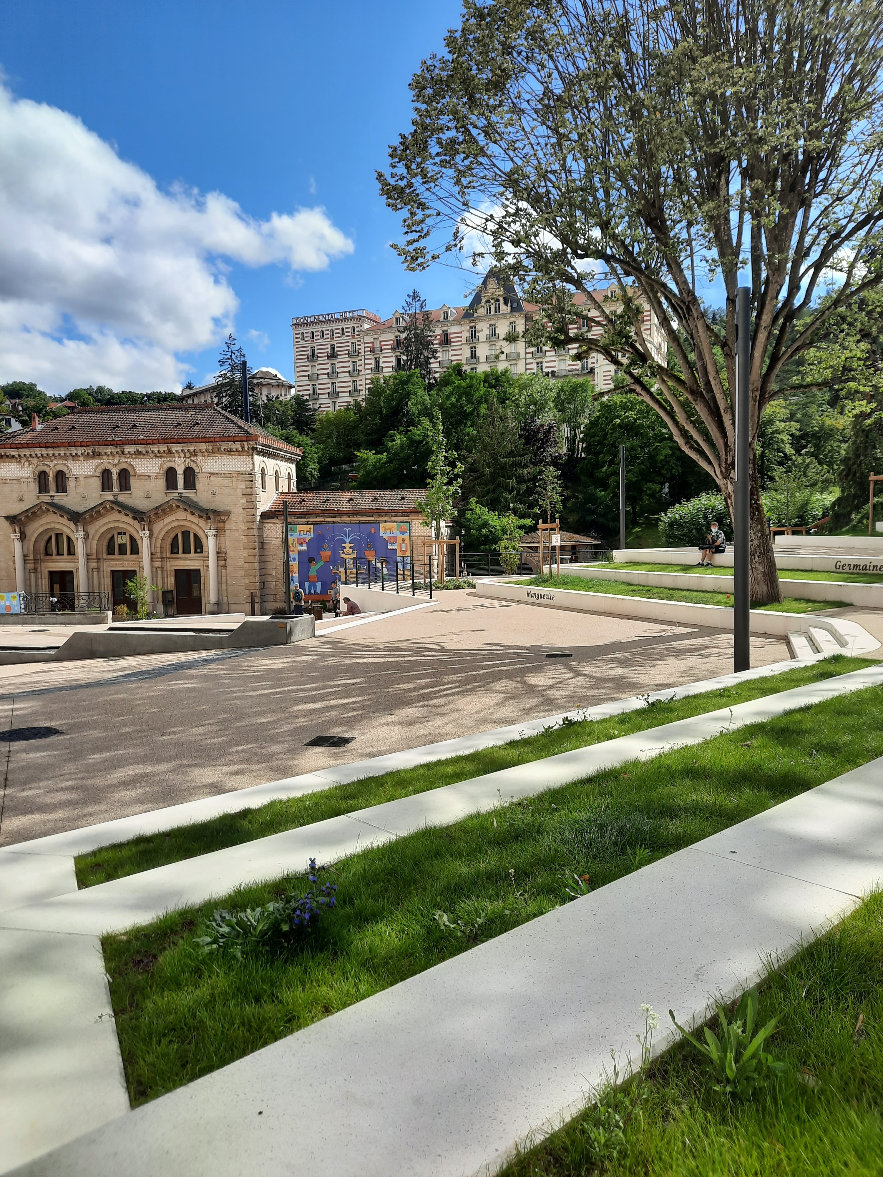 La place centrale avec le théâtre, le casino et l'entrée des termes est magnifique. Actuellement, les cures thermales sont suspendues suite à des travaux et un disfonctionnement de la remontée d'eau. Le parc pour les campings car est très bien, nous avons même appercu deux chevreuils dans la forêt en face.