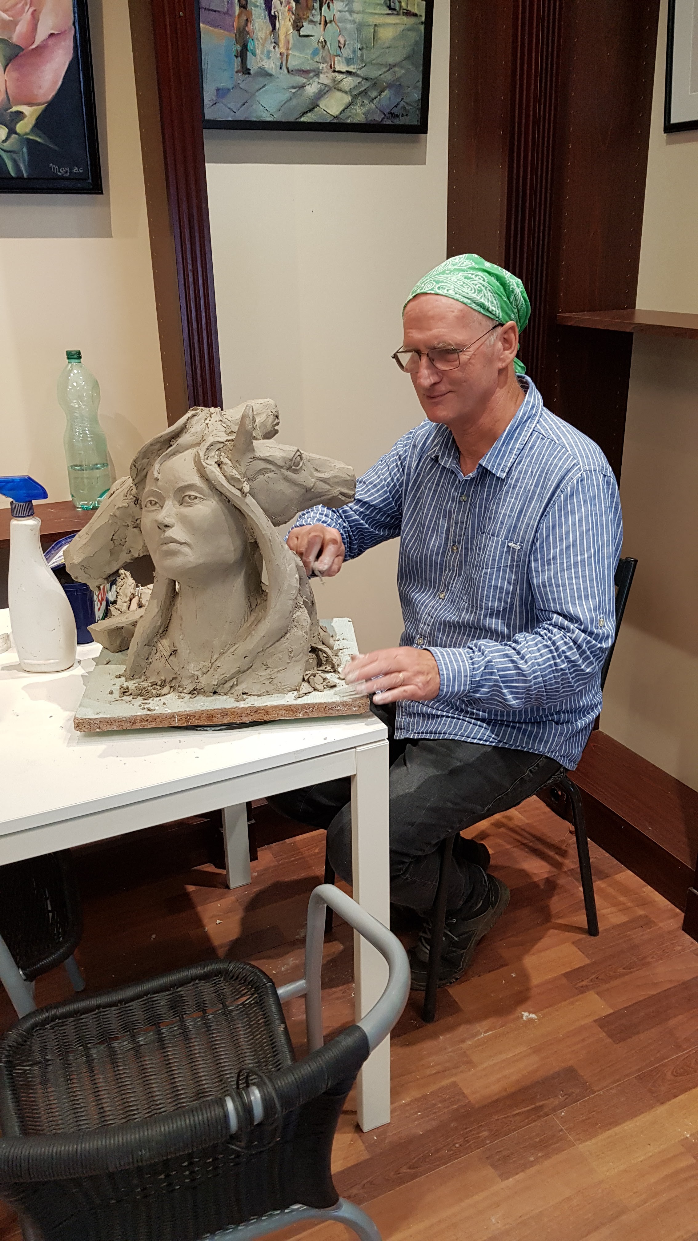 Une promenade avant d'aller voir un spectacle au Casino...ou d'allez tenter la chance aux machines à sous ! Parc très agréable ! Une très belle exposition de peintures et sculptures avec en prime, un sculpteur qui travaillait sur sa nouvelle oeuvre. Merci pour les explications sur votre art et votre passion ! Autre rencontre au parc de Chatel-Guyon : Francis, peintre et ses oeuvres magiques ! Une belle rencontre avec un artiste dans l'âme !